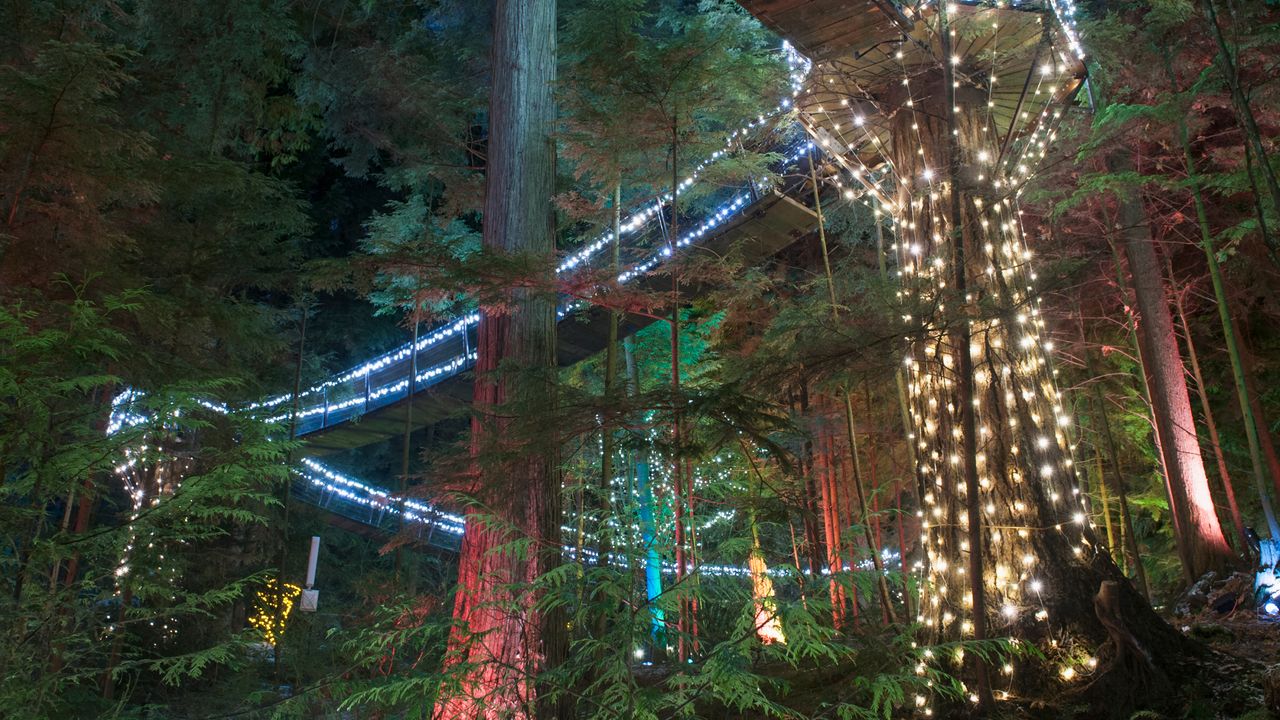 Illuminated Capilano Suspension Bridge Park, Vancouver, British Columbia (© Brian Caissie/Getty Images)(Bing Canada)