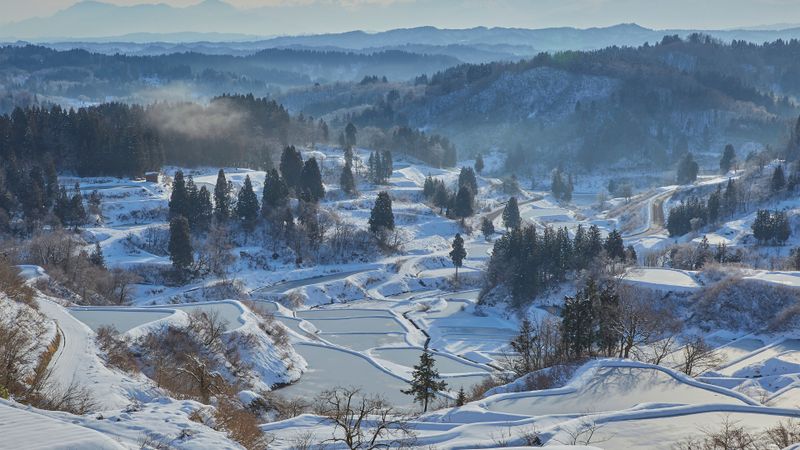雪に覆われた星峠の棚田, 新潟県 十日町市 (© solakoudai/Shutterstock)(Bing Japan)